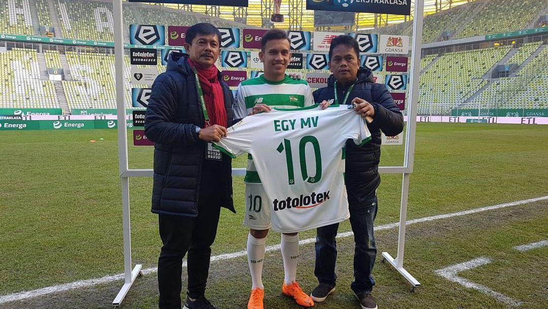 Adam lalu memberikan yusuf mansur sebuah jersey lechia gdansk bertuliskan egy maulana vikri.